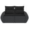 Canapé de jardin avec coussins 2 places noir résine tresséeDétendez-vous et profitez de l'extérieur dans ce confortable canapé de jardin 2 places ! Matériau durable : la résine tressée, également connue sous le nom de poly rotin, est un matériau synthétique solide et nécessitant peu d'entretien qui ressemble au rotin naturel. Il est léger, facile à nettoyer et couramment utilisé pour les meubles d'extérieur en raison de sa durabilité et de ses propriétés de résistance aux intempéries.Expérience d'assise confortable : ce mobilier d'extérieur, doté de coussins épais, offre une expérience d'assise confortable.Housse amovible et lavable : ces coussins de siège sont dotés de housses amovibles pour un lavage et un entretien faciles.Conception modulaire : cet ensemble de meubles d'extérieur a une conception modulaire, ce qui le rend complètement flexible et facile à déplacer, afin que vous puissiez créer un agencement de meubles d'extérieur personnalisé. Bon à savoir :Pour que vos meubles d'extérieur restent beaux, nous vous recommandons de les protéger avec une housse imperméable.