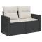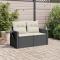 Canapé de jardin avec coussins 2 places noir résine tresséeDétendez-vous et profitez de l'extérieur dans ce confortable canapé de jardin 2 places ! Matériau durable : la résine tressée, également connue sous le nom de poly rotin, est un matériau synthétique solide et nécessitant peu d'entretien qui ressemble au rotin naturel. Il est léger, facile à nettoyer et couramment utilisé pour les meubles d'extérieur en raison de sa durabilité et de ses propriétés de résistance aux intempéries.Table d'appoint pratique : ce mobilier d'extérieur comprend une table d'appoint pliable avec un ressort à gaz sur les accoudoirs, offrant un endroit pratique pour garder vos essentiels à portée de main.Fonction de rangement avec sac résistant à l'eau : chaque siège de jardin dispose d'un espace de rangement sous l'assise, complété par un sac résistant à l'eau pour ranger les coussins, les jouets et d'autres objets. Les sacs intérieurs sont dotés d'un couvercle et peuvent être solidement fixés aux sièges à l'aide des bandes auto-agrippantes pour plus de stabilité.Expérience d'assise confortable : ce mobilier d'extérieur, doté de coussins épais, offre une expérience d'assise confortable.Housse amovible et lavable : ces coussins de siège sont dotés de housses amovibles pour un lavage et un entretien faciles. Bon à savoir :Pour que vos meubles d'extérieur restent beaux, nous vous recommandons de les protéger avec une housse imperméable.