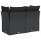 Canapé de jardin avec coussins 2 places noir résine tresséeDétendez-vous et profitez de l'extérieur dans ce confortable canapé de jardin 2 places ! Matériau durable : la résine tressée, également connue sous le nom de poly rotin, est un matériau synthétique solide et nécessitant peu d'entretien qui ressemble au rotin naturel. Il est léger, facile à nettoyer et couramment utilisé pour les meubles d'extérieur en raison de sa durabilité et de ses propriétés de résistance aux intempéries.Fonction de rangement avec sac résistant à l'eau : chaque siège de jardin dispose d'un espace de rangement sous l'assise, complété par un sac résistant à l'eau pour ranger les coussins, les jouets et d'autres objets. Les sacs intérieurs sont dotés d'un couvercle et peuvent être solidement fixés aux sièges à l'aide des bandes auto-agrippantes pour plus de stabilité.Expérience d'assise confortable : ce mobilier d'extérieur, doté de coussins épais, offre une expérience d'assise confortable.Housse amovible et lavable : ces coussins de siège sont dotés de housses amovibles pour un lavage et un entretien faciles.Conception modulaire : cet ensemble de meubles d'extérieur a une conception modulaire, ce qui le rend complètement flexible et facile à déplacer, afin que vous puissiez créer un agencement de meubles d'extérieur personnalisé. Bon à savoir :Pour que vos meubles d'extérieur restent beaux, nous vous recommandons de les protéger avec une housse imperméable.