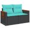 Canapé de jardin avec coussins 2 places en résine tressée noireDétendez-vous et profitez du plein air dans ce confortable canapé de jardin 2 places ! Matériau durable : le rotin PE, également connu sous le nom de polyrotin, est un matériau synthétique solide et nécessitant peu d'entretien qui ressemble au rotin naturel. Il est léger, facile à nettoyer et couramment utilisé pour les meubles d'extérieur en raison de sa durabilité et de ses propriétés de résistance aux intempéries. Table d'appoint pratique : Ce mobilier d'extérieur est doté d'une table d'appoint pliable avec un vérin à gaz sur les accoudoirs, offrant un endroit pratique pour garder vos essentiels à portée de main. Assise confortable : Ce mobilier d'extérieur, doté de coussins épais, offre une assise confortable. Housse amovible et lavable : Ces coussins d'assise sont dotés de housses amovibles pour un lavage et un entretien faciles. Conception modulaire : Cet ensemble de mobilier d'extérieur a une conception modulaire, ce qui le rend entièrement flexible et facile à déplacer, afin que vous puissiez créer un aménagement de mobilier d'extérieur personnalisé. Bon à savoir : Pour que vos meubles d'extérieur restent beaux, nous vous recommandons de les protéger avec une housse imperméable.