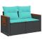 Canapé de jardin avec coussins 2 places en résine tressée noireDétendez-vous et profitez du plein air dans ce confortable canapé de jardin 2 places ! Matériau durable : le rotin PE, également connu sous le nom de polyrotin, est un matériau synthétique solide et nécessitant peu d'entretien qui ressemble au rotin naturel. Il est léger, facile à nettoyer et couramment utilisé pour les meubles d'extérieur en raison de sa durabilité et de ses propriétés de résistance aux intempéries. Table d'appoint pratique : Ce mobilier d'extérieur est doté d'une table d'appoint pliable avec un vérin à gaz sur les accoudoirs, offrant un endroit pratique pour garder vos essentiels à portée de main. Assise confortable : Ce mobilier d'extérieur, doté de coussins épais, offre une assise confortable. Housse amovible et lavable : Ces coussins d'assise sont dotés de housses amovibles pour un lavage et un entretien faciles. Conception modulaire : Cet ensemble de mobilier d'extérieur a une conception modulaire, ce qui le rend entièrement flexible et facile à déplacer, afin que vous puissiez créer un aménagement de mobilier d'extérieur personnalisé. Bon à savoir : Pour que vos meubles d'extérieur restent beaux, nous vous recommandons de les protéger avec une housse imperméable. ,