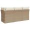 Canapé de jardin avec coussins 3 places beige résine tresséeDétendez-vous et profitez de l'extérieur dans ce confortable canapé de jardin 3 places ! Matériau durable : la résine tressée, également connue sous le nom de poly rotin, est un matériau synthétique solide et nécessitant peu d'entretien qui ressemble au rotin naturel. Il est léger, facile à nettoyer et couramment utilisé pour les meubles d'extérieur en raison de sa durabilité et de ses propriétés de résistance aux intempéries.Fonction de rangement avec sac résistant à l'eau : chaque siège de jardin dispose d'un espace de rangement sous l'assise, complété par un sac résistant à l'eau pour ranger les coussins, les jouets et d'autres objets. Les sacs intérieurs sont dotés d'un couvercle et peuvent être solidement fixés aux sièges à l'aide des bandes auto-agrippantes pour plus de stabilité.Expérience d'assise confortable : ce mobilier d'extérieur, doté de coussins épais, offre une expérience d'assise confortable.Housse amovible et lavable : ces coussins de siège sont dotés de housses amovibles pour un lavage et un entretien faciles.Conception modulaire : cet ensemble de meubles d'extérieur a une conception modulaire, ce qui le rend complètement flexible et facile à déplacer, afin que vous puissiez créer un agencement de meubles d'extérieur personnalisé. Bon à savoir :Pour que vos meubles d'extérieur restent beaux, nous vous recommandons de les protéger avec une housse imperméable.