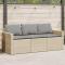 Canapé de jardin avec coussins 3 places beige résine tresséeDétendez-vous et profitez de l'extérieur dans ce confortable canapé de jardin 3 places ! Matériau durable : la résine tressée, également connue sous le nom de poly rotin, est un matériau synthétique solide et nécessitant peu d'entretien qui ressemble au rotin naturel. Il est léger, facile à nettoyer et couramment utilisé pour les meubles d'extérieur en raison de sa durabilité et de ses propriétés de résistance aux intempéries.Expérience d'assise confortable : ce mobilier d'extérieur, doté de coussins épais, offre une expérience d'assise confortable.Housse amovible et lavable : ces coussins de siège sont dotés de housses amovibles pour un lavage et un entretien faciles.Cadre robuste et stable : le cadre en acier enduit de poudre assure la solidité et la stabilité du meuble de jardin pour une utilisation quotidienne à l'extérieur. Bon à savoir :Pour que vos meubles d'extérieur restent beaux, nous vous recommandons de les protéger avec une housse imperméable. Maximum 110 kg par siège. Soyez conscient du risque de feux ouverts et d'autres sources de forte chaleur à proximité du produit.