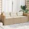 Canapé de jardin avec coussins 3 places beige résine tresséeDétendez-vous et profitez de l'extérieur dans ce confortable canapé de jardin 3 places ! Matériau durable : la résine tressée, également connue sous le nom de poly rotin, est un matériau synthétique solide et nécessitant peu d'entretien qui ressemble au rotin naturel. Il est léger, facile à nettoyer et couramment utilisé pour les meubles d'extérieur en raison de sa durabilité et de ses propriétés de résistance aux intempéries.Expérience d'assise confortable : ce mobilier d'extérieur, doté de coussins épais, offre une expérience d'assise confortable.Housse amovible et lavable : ces coussins de siège sont dotés de housses amovibles pour un lavage et un entretien faciles.Cadre robuste et stable : le cadre en acier enduit de poudre assure la solidité et la stabilité du meuble de jardin pour une utilisation quotidienne à l'extérieur. Bon à savoir :Pour que vos meubles d'extérieur restent beaux, nous vous recommandons de les protéger avec une housse imperméable. Maximum 110 kg par siège. Soyez conscient du risque de feux ouverts et d'autres sources de forte chaleur à proximité du produit.