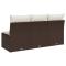 Canapé de jardin avec coussins 3 places brun résine tresséeDétendez-vous et profitez de l'extérieur dans ce confortable canapé de jardin 3 places ! Matériau durable : la résine tressée, également connue sous le nom de poly rotin, est un matériau synthétique solide et nécessitant peu d'entretien qui ressemble au rotin naturel. Il est léger, facile à nettoyer et couramment utilisé pour les meubles d'extérieur en raison de sa durabilité et de ses propriétés de résistance aux intempéries.Fonction de rangement avec sac résistant à l'eau : chaque siège de jardin dispose d'un espace de rangement sous l'assise, complété par un sac résistant à l'eau pour ranger les coussins, les jouets et d'autres objets. Les sacs intérieurs sont dotés d'un couvercle et peuvent être solidement fixés aux sièges à l'aide des bandes auto-agrippantes pour plus de stabilité.Expérience d'assise confortable : ce mobilier d'extérieur, doté de coussins épais, offre une expérience d'assise confortable.Housse amovible et lavable : ces coussins de siège sont dotés de housses amovibles pour un lavage et un entretien faciles.Conception modulaire : cet ensemble de meubles d'extérieur a une conception modulaire, ce qui le rend complètement flexible et facile à déplacer, afin que vous puissiez créer un agencement de meubles d'extérieur personnalisé. Bon à savoir :Pour que vos meubles d'extérieur restent beaux, nous vous recommandons de les protéger avec une housse imperméable.
