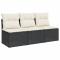 Canapé de jardin avec coussins 3 places noir résine tresséeDétendez-vous et profitez de l'extérieur dans ce confortable canapé de jardin 3 places ! Matériau durable : la résine tressée, également connue sous le nom de poly rotin, est un matériau synthétique solide et nécessitant peu d'entretien qui ressemble au rotin naturel. Il est léger, facile à nettoyer et couramment utilisé pour les meubles d'extérieur en raison de sa durabilité et de ses propriétés de résistance aux intempéries.Fonction de rangement avec sac résistant à l'eau : chaque siège de jardin dispose d'un espace de rangement sous l'assise, complété par un sac résistant à l'eau pour ranger les coussins, les jouets et d'autres objets. Les sacs intérieurs sont dotés d'un couvercle et peuvent être solidement fixés aux sièges à l'aide des bandes auto-agrippantes pour plus de stabilité.Expérience d'assise confortable : ce mobilier d'extérieur, doté de coussins épais, offre une expérience d'assise confortable.Housse amovible et lavable : ces coussins de siège sont dotés de housses amovibles pour un lavage et un entretien faciles.Conception modulaire : cet ensemble de meubles d'extérieur a une conception modulaire, ce qui le rend complètement flexible et facile à déplacer, afin que vous puissiez créer un agencement de meubles d'extérieur personnalisé. Bon à savoir :Pour que vos meubles d'extérieur restent beaux, nous vous recommandons de les protéger avec une housse imperméable.