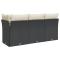 Canapé de jardin avec coussins 3 places noir résine tresséeDétendez-vous et profitez de l'extérieur dans ce confortable canapé de jardin 3 places ! Matériau durable : la résine tressée, également connue sous le nom de poly rotin, est un matériau synthétique solide et nécessitant peu d'entretien qui ressemble au rotin naturel. Il est léger, facile à nettoyer et couramment utilisé pour les meubles d'extérieur en raison de sa durabilité et de ses propriétés de résistance aux intempéries.Fonction de rangement avec sac résistant à l'eau : chaque siège de jardin dispose d'un espace de rangement sous l'assise, complété par un sac résistant à l'eau pour ranger les coussins, les jouets et d'autres objets. Les sacs intérieurs sont dotés d'un couvercle et peuvent être solidement fixés aux sièges à l'aide des bandes auto-agrippantes pour plus de stabilité.Expérience d'assise confortable : ce mobilier d'extérieur, doté de coussins épais, offre une expérience d'assise confortable.Housse amovible et lavable : ces coussins de siège sont dotés de housses amovibles pour un lavage et un entretien faciles.Conception modulaire : cet ensemble de meubles d'extérieur a une conception modulaire, ce qui le rend complètement flexible et facile à déplacer, afin que vous puissiez créer un agencement de meubles d'extérieur personnalisé. Bon à savoir :Pour que vos meubles d'extérieur restent beaux, nous vous recommandons de les protéger avec une housse imperméable.