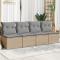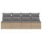 Canapé de jardin avec coussins 4 places beige résine tresséeDétendez-vous et profitez de l'extérieur dans ce confortable canapé de jardin 4 places ! Matériau durable : la résine tressée, également connue sous le nom de poly rotin, est un matériau synthétique solide et nécessitant peu d'entretien qui ressemble au rotin naturel. Il est léger, facile à nettoyer et couramment utilisé pour les meubles d'extérieur en raison de sa durabilité et de ses propriétés de résistance aux intempéries.Expérience d'assise confortable : ce mobilier d'extérieur, doté de coussins épais, offre une expérience d'assise confortable.Housse amovible et lavable : ces coussins de siège sont dotés de housses amovibles pour un lavage et un entretien faciles.Conception modulaire : cet ensemble de meubles d'extérieur a une conception modulaire, ce qui le rend complètement flexible et facile à déplacer, afin que vous puissiez créer un agencement de meubles d'extérieur personnalisé. Bon à savoir :Pour que vos meubles d'extérieur restent beaux, nous vous recommandons de les protéger avec une housse imperméable.