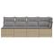 Canapé de jardin avec coussins 4 places beige résine tresséeDétendez-vous et profitez de l'extérieur dans ce confortable canapé de jardin 4 places ! Matériau durable : la résine tressée, également connue sous le nom de poly rotin, est un matériau synthétique solide et nécessitant peu d'entretien qui ressemble au rotin naturel. Il est léger, facile à nettoyer et couramment utilisé pour les meubles d'extérieur en raison de sa durabilité et de ses propriétés de résistance aux intempéries.Expérience d'assise confortable : ce mobilier d'extérieur, doté de coussins épais, offre une expérience d'assise confortable.Housse amovible et lavable : ces coussins de siège sont dotés de housses amovibles pour un lavage et un entretien faciles.Conception modulaire : cet ensemble de meubles d'extérieur a une conception modulaire, ce qui le rend complètement flexible et facile à déplacer, afin que vous puissiez créer un agencement de meubles d'extérieur personnalisé. Bon à savoir :Pour que vos meubles d'extérieur restent beaux, nous vous recommandons de les protéger avec une housse imperméable.