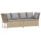 Canapé de jardin avec coussins beige résine tresséeDétendez-vous et profitez de l'extérieur dans ce confortable canapé de jardin ! Matériau durable : la résine tressée, également connue sous le nom de poly rotin, est un matériau synthétique solide et nécessitant peu d'entretien qui ressemble au rotin naturel. Elle est légère, facile à nettoyer et couramment utilisée pour les meubles d'extérieur en raison de sa durabilité et de ses propriétés de résistance aux intempéries.Expérience d'assise confortable : ce mobilier d'extérieur, doté de coussins épais, offre une expérience d'assise confortable.Housse amovible et lavable : ces coussins de siège sont dotés de housses amovibles pour un lavage et un entretien faciles.Conception modulaire : cet ensemble de meubles d'extérieur a une conception modulaire, ce qui le rend complètement flexible et facile à déplacer, afin que vous puissiez créer un agencement de meubles d'extérieur personnalisé.Cadre robuste et stable : le cadre en acier enduit de poudre assure la solidité et la stabilité du meuble de jardin pour une utilisation quotidienne à l'extérieur. Bon à savoir :Pour que vos meubles d'extérieur restent beaux, nous vous recommandons de les protéger avec une housse imperméable.
