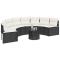 Canapé de jardin avec coussins demi-rond noir résine tresséeCe canapé de jardin de forme demi-ronde est le complément parfait à votre jardin, terrasse ou patio, offrant un espace confortable et accueillant pour discuter avec la famille et les amis ou simplement pour vous détendre et profiter du plein air. Matériau durable : la résine tressée, également connue sous le nom de poly rotin, est un matériau synthétique solide et nécessitant peu d'entretien qui ressemble au rotin naturel. Elle est légère, facile à nettoyer et couramment utilisée pour les meubles d'extérieur en raison de sa durabilité et de ses propriétés de résistance aux intempéries.Expérience d'assise confortable : ce mobilier d'extérieur, doté de coussins épais, offre une expérience d'assise confortable.Housse amovible et lavable : ces coussins de siège sont dotés de housses amovibles pour un lavage et un entretien faciles.Cadre robuste et stable : le cadre en acier enduit de poudre assure la solidité et la stabilité du meuble de jardin pour une utilisation quotidienne à l'extérieur. Bon à savoir :Pour que vos meubles d'extérieur restent beaux, nous vous recommandons de les protéger avec une housse imperméable. Maximum 110 kg par siège. Soyez conscient du risque de feu ouvert et d'autres sources de forte chaleur à proximité de l'appareil.