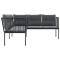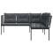 Canapé de jardin avec coussins forme de L noir acier textilèneCe canapé de jardin en forme de L est le complément parfait de votre jardin, terrasse ou patio, offrant un espace confortable et accueillant pour discuter avec la famille et les amis ou simplement se détendre et profiter de l'extérieur. Cadre robuste et stable : le cadre en acier enduit de poudre assure la solidité et la stabilité du meuble de jardin pour une utilisation quotidienne à l'extérieur.Durable et longue durée de vie : le tissu textilène est apprécié pour sa durabilité, résistance à l'eau et à la décoloration, facilité d'entretien et protection contre les rayons UV et la moisissure, ce qui en fait un choix idéal pour le meuble d'extérieur et les structures d'ombrage.Expérience d'assise confortable : ce mobilier d'extérieur, doté de coussins épais, offre une expérience d'assise confortable.Housse amovible et lavable : ces coussins de siège sont dotés de housses amovibles pour un lavage et un entretien faciles. Bon à savoir :Pour que vos meubles d'extérieur restent beaux, nous vous recommandons de les protéger avec une housse imperméable. Maximum 110 kg par siège. Soyez conscient du risque de feux ouverts et d'autres sources de forte chaleur à proximité du produit.