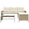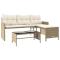 Canapé de jardin avec table et coussins en forme de L beigeCe canapé de jardin en forme de L est le complément parfait de votre jardin, terrasse ou patio, offrant un espace confortable et accueillant pour discuter avec la famille et les amis ou simplement se détendre et profiter de l'extérieur. Matériau durable : la résine tressée, également connue sous le nom de poly rotin, est un matériau synthétique solide et nécessitant peu d'entretien qui ressemble au rotin naturel. Il est léger, facile à nettoyer et couramment utilisé pour les meubles d'extérieur en raison de sa durabilité et de ses propriétés de résistance aux intempéries.Expérience d'assise confortable : ce mobilier d'extérieur, doté de coussins épais, offre une expérience d'assise confortable.Housse amovible et lavable : ces coussins de siège sont dotés de housses amovibles pour un lavage et un entretien faciles. Cadre robuste et stable : le cadre en acier enduit de poudre assure la solidité et la stabilité du meuble de jardin pour une utilisation quotidienne à l'extérieur.Dessus en verre : le dessus de la table d'extérieur est fabriqué en verre trempé solide et durable, ce qui le rend facile à nettoyer avec un chiffon humide et ajoute une touche d'élégance à votre espace extérieur. Bon à savoir :Pour que vos meubles d'extérieur restent beaux, nous vous recommandons de les protéger avec une housse imperméable. Maximum 110 kg par siège. Soyez conscient du risque de feux ouverts et d'autres sources de forte chaleur à proximité du produit.