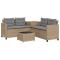 Canapé de jardin avec table et coussins en forme de L beigeCe canapé de jardin en forme de L est le complément parfait de votre jardin, terrasse ou patio, offrant un espace confortable et accueillant pour discuter avec la famille et les amis ou simplement se détendre et profiter de l'extérieur. Matériau durable : la résine tressée, également connue sous le nom de poly rotin, est un matériau synthétique solide et nécessitant peu d'entretien qui ressemble au rotin naturel. Elle est légère, facile à nettoyer et couramment utilisée pour les meubles d'extérieur en raison de sa durabilité et de ses propriétés de résistance aux intempéries.Fonction de rangement avec sac résistant à l'eau : la table d'appoint de jardin dispose d'un espace de rangement en dessous, complété par un sac résistant à l'eau pour ranger les coussins, les jouets et d'autres objets. Les sacs intérieurs sont dotés d'un couvercle et peuvent être solidement fixés aux sièges à l'aide de bandes auto-agrippantes pour plus de stabilité.Expérience d'assise confortable : ce mobilier d'extérieur, doté de coussins épais, offre une expérience d'assise confortable.Housse amovible et lavable : ces coussins de siège sont dotés de housses amovibles pour un lavage et un entretien faciles.Dessus en verre : le dessus de la table d'extérieur est fabriqué en verre trempé solide et durable, ce qui le rend facile à nettoyer avec un chiffon humide et ajoute une touche d'élégance à votre espace extérieur. Bon à savoir :Pour que vos meubles d'extérieur restent beaux, nous vous recommandons de les protéger avec une housse imperméable.