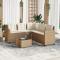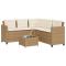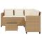 Canapé de jardin avec table et coussins en forme de L beigeCe canapé de jardin en forme de L est le complément parfait de votre jardin, terrasse ou patio, offrant un espace confortable et accueillant pour discuter avec la famille et les amis ou simplement se détendre et profiter de l'extérieur. Matériau durable : la résine tressée, également connue sous le nom de poly rotin, est un matériau synthétique solide et nécessitant peu d'entretien qui ressemble au rotin naturel. Il est léger, facile à nettoyer et couramment utilisé pour les meubles d'extérieur en raison de sa durabilité et de ses propriétés de résistance aux intempéries.Expérience d'assise confortable : ce mobilier d'extérieur, doté de coussins épais, offre une expérience d'assise confortable.Dessus en verre : le dessus de la table d'extérieur est fabriqué en verre trempé solide et durable, ce qui le rend facile à nettoyer avec un chiffon humide et ajoute une touche d'élégance à votre espace extérieur.Housse amovible et lavable : ces coussins de siège sont dotés de housses amovibles pour un lavage et un entretien faciles.Cadre robuste et stable : le cadre en acier enduit de poudre assure la solidité et la stabilité du meuble de jardin pour une utilisation quotidienne à l'extérieur. Bon à savoir :Pour que vos meubles d'extérieur restent beaux, nous vous recommandons de les protéger avec une housse imperméable. Maximum 110 kg par siège. Soyez conscient du risque de feux ouverts et d'autres sources de forte chaleur à proximité du produit.