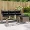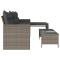 Canapé de jardin avec table et coussins en forme de L grisCe canapé de jardin en forme de L est le complément parfait de votre jardin, terrasse ou patio, offrant un espace confortable et accueillant pour discuter avec la famille et les amis ou simplement se détendre et profiter de l'extérieur. Matériau durable : la résine tressée, également connue sous le nom de poly rotin, est un matériau synthétique solide et nécessitant peu d'entretien qui ressemble au rotin naturel. Il est léger, facile à nettoyer et couramment utilisé pour les meubles d'extérieur en raison de sa durabilité et de ses propriétés de résistance aux intempéries.Expérience d'assise confortable : ce mobilier d'extérieur, doté de coussins épais, offre une expérience d'assise confortable.Housse amovible et lavable : ces coussins de siège sont dotés de housses amovibles pour un lavage et un entretien faciles. Cadre robuste et stable : le cadre en acier enduit de poudre assure la solidité et la stabilité du meuble de jardin pour une utilisation quotidienne à l'extérieur.Dessus en verre : le dessus de la table d'extérieur est fabriqué en verre trempé solide et durable, ce qui le rend facile à nettoyer avec un chiffon humide et ajoute une touche d'élégance à votre espace extérieur. Bon à savoir :Pour que vos meubles d'extérieur restent beaux, nous vous recommandons de les protéger avec une housse imperméable. Maximum 110 kg par siège. Soyez conscient du risque de feux ouverts et d'autres sources de forte chaleur à proximité du produit.
