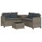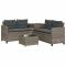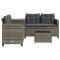 Canapé de jardin avec table et coussins en forme de L grisCe canapé de jardin en forme de L est le complément parfait de votre jardin, terrasse ou patio, offrant un espace confortable et accueillant pour discuter avec la famille et les amis ou simplement se détendre et profiter de l'extérieur. Matériau durable : la résine tressée, également connue sous le nom de poly rotin, est un matériau synthétique solide et nécessitant peu d'entretien qui ressemble au rotin naturel. Elle est légère, facile à nettoyer et couramment utilisée pour les meubles d'extérieur en raison de sa durabilité et de ses propriétés de résistance aux intempéries.Fonction de rangement avec sac résistant à l'eau : la table d'appoint de jardin dispose d'un espace de rangement en dessous, complété par un sac résistant à l'eau pour ranger les coussins, les jouets et d'autres objets. Les sacs intérieurs sont dotés d'un couvercle et peuvent être solidement fixés aux sièges à l'aide de bandes auto-agrippantes pour plus de stabilité.Expérience d'assise confortable : ce mobilier d'extérieur, doté de coussins épais, offre une expérience d'assise confortable.Housse amovible et lavable : ces coussins de siège sont dotés de housses amovibles pour un lavage et un entretien faciles.Dessus en verre : le dessus de la table d'extérieur est fabriqué en verre trempé solide et durable, ce qui le rend facile à nettoyer avec un chiffon humide et ajoute une touche d'élégance à votre espace extérieur. Bon à savoir :Pour que vos meubles d'extérieur restent beaux, nous vous recommandons de les protéger avec une housse imperméable.