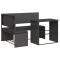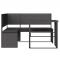 Canapé de jardin avec table et coussins en forme de L noirCe canapé de jardin en forme de L est le complément parfait de votre jardin, terrasse ou patio, offrant un espace confortable et accueillant pour discuter avec la famille et les amis ou simplement se détendre et profiter de l'extérieur. Matériau durable : la résine tressée, également connue sous le nom de poly rotin, est un matériau synthétique solide et nécessitant peu d'entretien qui ressemble au rotin naturel. Il est léger, facile à nettoyer et couramment utilisé pour les meubles d'extérieur en raison de sa durabilité et de ses propriétés de résistance aux intempéries.Expérience d'assise confortable : ce mobilier d'extérieur, doté de coussins épais, offre une expérience d'assise confortable.Cadre robuste et stable : le cadre en acier enduit de poudre assure la solidité et la stabilité du meuble de jardin pour une utilisation quotidienne à l'extérieur.Design pliable : cette table de jardin peut être pliée pour gagner de la place lorsqu'elle n'est pas utilisée. Bon à savoir :Pour que vos meubles d'extérieur restent beaux, nous vous recommandons de les protéger avec une housse imperméable.