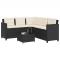 Canapé de jardin avec table et coussins en forme de L noirCe canapé de jardin en forme de L est le complément parfait de votre jardin, terrasse ou patio, offrant un espace confortable et accueillant pour discuter avec la famille et les amis ou simplement se détendre et profiter de l'extérieur. Matériau durable : la résine tressée, également connue sous le nom de poly rotin, est un matériau synthétique solide et nécessitant peu d'entretien qui ressemble au rotin naturel. Il est léger, facile à nettoyer et couramment utilisé pour les meubles d'extérieur en raison de sa durabilité et de ses propriétés de résistance aux intempéries.Expérience d'assise confortable : ce mobilier d'extérieur, doté de coussins épais, offre une expérience d'assise confortable.Dessus en verre : le dessus de la table d'extérieur est fabriqué en verre trempé solide et durable, ce qui le rend facile à nettoyer avec un chiffon humide et ajoute une touche d'élégance à votre espace extérieur.Housse amovible et lavable : ces coussins de siège sont dotés de housses amovibles pour un lavage et un entretien faciles.Cadre robuste et stable : le cadre en acier enduit de poudre assure la solidité et la stabilité du meuble de jardin pour une utilisation quotidienne à l'extérieur. Bon à savoir :Pour que vos meubles d'extérieur restent beaux, nous vous recommandons de les protéger avec une housse imperméable. Maximum 110 kg par siège. Soyez conscient du risque de feux ouverts et d'autres sources de forte chaleur à proximité du produit.