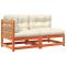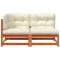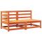 Canapé de jardin coussins 2 places cire marron bois pin massifCe canapé de jardin en bois 2 places avec coussins sera un excellent supplément à votre jardin, terrasse ou patio pour discuter en famille et entre amis ou tout simplement profiter du beau temps. Bois de pin massif : le bois de pin massif est un matériau naturel magnifique. Le bois de pin a un grain droit et les noeuds donnent au matériau son aspect caractéristique et rustique. Fabriqué en bois de pin massif, le canapé d'extérieur est durable et stable. Expérience d'assise confortable : le dossier et les coussins rembourrés rendent le siège de jardin plus confortable pour s'asseoir. Conception à lattes : la conception à lattes du canapé palette empêche efficacement l'eau de s'accumuler, ce qui garantit que l'assise reste sèche et exempte de tout risque de pourriture. Conception modulaire : le canapé de jardin en bois présente une conception modulaire, ce qui le rend complètement flexible et facile à déplacer pour s'adapter à n'importe quel environnement. Vous pouvez le combiner avec d'autres segments modulaires disponibles dans le menu déroulant pour créer vos propres configurations d'ensemble de salon de jardin personnelles ! Bon à savoir : Pour que vos meubles d'extérieur restent beaux, nous vous recommandons de les protéger avec une housse imperméable. Maximum 110 kg par siège. Soyez conscient du risque de feux ouverts et d'autres sources de forte chaleur à proximité du produit. ,