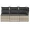 Canapé de jardin et coussins 3 places gris clair résine tresséeDétendez-vous et profitez de l'extérieur dans ce confortable canapé de jardin 3 places ! Matériau durable : la résine tressée, également connue sous le nom de poly rotin, est un matériau synthétique solide et nécessitant peu d'entretien qui ressemble au rotin naturel. Il est léger, facile à nettoyer et couramment utilisé pour les meubles d'extérieur en raison de sa durabilité et de ses propriétés de résistance aux intempéries.Fonction de rangement avec sac résistant à l'eau : chaque siège de jardin dispose d'un espace de rangement sous l'assise, complété par un sac résistant à l'eau pour ranger les coussins, les jouets et d'autres objets. Les sacs intérieurs sont dotés d'un couvercle et peuvent être solidement fixés aux sièges à l'aide des bandes auto-agrippantes pour plus de stabilité.Expérience d'assise confortable : ce mobilier d'extérieur, doté de coussins épais, offre une expérience d'assise confortable.Housse amovible et lavable : ces coussins de siège sont dotés de housses amovibles pour un lavage et un entretien faciles.Conception modulaire : cet ensemble de meubles d'extérieur a une conception modulaire, ce qui le rend complètement flexible et facile à déplacer, afin que vous puissiez créer un agencement de meubles d'extérieur personnalisé. Bon à savoir :Pour que vos meubles d'extérieur restent beaux, nous vous recommandons de les protéger avec une housse imperméable.