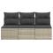 Canapé de jardin et coussins 3 places gris clair résine tresséeDétendez-vous et profitez de l'extérieur dans ce confortable canapé de jardin 3 places ! Matériau durable : la résine tressée, également connue sous le nom de poly rotin, est un matériau synthétique solide et nécessitant peu d'entretien qui ressemble au rotin naturel. Il est léger, facile à nettoyer et couramment utilisé pour les meubles d'extérieur en raison de sa durabilité et de ses propriétés de résistance aux intempéries.Fonction de rangement avec sac résistant à l'eau : chaque siège de jardin dispose d'un espace de rangement sous l'assise, complété par un sac résistant à l'eau pour ranger les coussins, les jouets et d'autres objets. Les sacs intérieurs sont dotés d'un couvercle et peuvent être solidement fixés aux sièges à l'aide des bandes auto-agrippantes pour plus de stabilité.Expérience d'assise confortable : ce mobilier d'extérieur, doté de coussins épais, offre une expérience d'assise confortable.Housse amovible et lavable : ces coussins de siège sont dotés de housses amovibles pour un lavage et un entretien faciles.Conception modulaire : cet ensemble de meubles d'extérieur a une conception modulaire, ce qui le rend complètement flexible et facile à déplacer, afin que vous puissiez créer un agencement de meubles d'extérieur personnalisé. Bon à savoir :Pour que vos meubles d'extérieur restent beaux, nous vous recommandons de les protéger avec une housse imperméable.