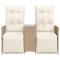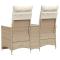 Canapé de jardin inclinable 2 places avec table beige rotinDétendez-vous et profitez de l'extérieur dans ce canapé de jardin inclinable confortable ! Matériau durable : la résine tressée, également connue sous le nom de poly rotin, est un matériau synthétique solide et nécessitant peu d'entretien qui ressemble au rotin naturel. Il est léger, facile à nettoyer et couramment utilisé pour les meubles d'extérieur en raison de sa durabilité et de ses propriétés de résistance aux intempéries.Table centrale pratique : ce mobilier d'extérieur est doté d'une table centrale intégrée, qui permet de ranger vos objets essentiels à portée de main.Dossier et repose-pied réglables : ce siège de jardin est doté d'une poignée. Vous pouvez régler le dossier et le repose-pied dans n'importe quelle position en tirant sur la poignée, et les remettre rapidement dans leur position initiale.Expérience d'assise confortable : ce mobilier d'extérieur, doté de coussins épais, offre une expérience d'assise confortable.Housse amovible et lavable : ces coussins de siège sont dotés de housses amovibles pour un lavage et un entretien faciles. Bon à savoir :Pour que vos meubles d'extérieur restent beaux, nous vous recommandons de les protéger avec une housse imperméable.