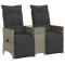 Canapé de jardin inclinable 2 places avec table gris poly rotinDétendez-vous et profitez de l'extérieur dans ce canapé de jardin inclinable confortable ! Matériau durable : la résine tressée, également connue sous le nom de poly rotin, est un matériau synthétique solide et nécessitant peu d'entretien qui ressemble au rotin naturel. Il est léger, facile à nettoyer et couramment utilisé pour les meubles d'extérieur en raison de sa durabilité et de ses propriétés de résistance aux intempéries.Table centrale pratique : ce mobilier d'extérieur est doté d'une table centrale intégrée, qui permet de ranger vos objets essentiels à portée de main.Dossier et repose-pied réglables : ce siège de jardin est doté d'une poignée. Vous pouvez régler le dossier et le repose-pied dans n'importe quelle position en tirant sur la poignée, et les remettre rapidement dans leur position initiale.Expérience d'assise confortable : ce mobilier d'extérieur, doté de coussins épais, offre une expérience d'assise confortable.Housse amovible et lavable : ces coussins de siège sont dotés de housses amovibles pour un lavage et un entretien faciles. Bon à savoir :Pour que vos meubles d'extérieur restent beaux, nous vous recommandons de les protéger avec une housse imperméable.