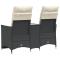 Canapé de jardin inclinable 2 places avec table noir poly rotinDétendez-vous et profitez de l'extérieur dans ce canapé de jardin inclinable confortable ! Matériau durable : la résine tressée, également connue sous le nom de poly rotin, est un matériau synthétique solide et nécessitant peu d'entretien qui ressemble au rotin naturel. Il est léger, facile à nettoyer et couramment utilisé pour les meubles d'extérieur en raison de sa durabilité et de ses propriétés de résistance aux intempéries.Table centrale pratique : ce mobilier d'extérieur est doté d'une table centrale intégrée, qui permet de ranger vos objets essentiels à portée de main.Dossier réglable : ce siège de jardin est doté des poignées. Vous pouvez régler le dossier dans n'importe quelle position en tirant sur la poignée et le remettre rapidement dans sa position initiale.Expérience d'assise confortable : ce mobilier d'extérieur, doté de coussins épais, offre une expérience d'assise confortable.Housse amovible et lavable : ces coussins de siège sont dotés de housses amovibles pour un lavage et un entretien faciles. Bon à savoir :Pour que vos meubles d'extérieur restent beaux, nous vous recommandons de les protéger avec une housse imperméable.