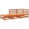 Canapé de jardin repose-pieds 2 places bois massif de pinCe canapé de jardin en bois 2 places avec repose-pieds sera un excellent supplément à votre jardin, terrasse ou patio pour discuter en famille et entre amis ou tout simplement profiter du beau temps. Bois de pin massif : le bois de pin massif est un matériau naturel magnifique. Le bois de pin a un grain droit et les noeuds donnent au matériau son aspect caractéristique et rustique. Fabriqué en bois de pin massif, le canapé d'extérieur est durable et stable. Expérience d'assise confortable : le dossier ajoute un confort d'assise supplémentaire pour les sièges de jardin. Utilisation polyvalente : ce repose-pieds d'extérieur peut non seulement être utilisé pour vous asseoir ou vous détendre, mais il peut également être utilisé comme table basse pour contenir vos boissons, votre nourriture et d'autres décorations. Conception à lattes : la conception à lattes du canapé palette empêche efficacement l'eau de s'accumuler, ce qui garantit que l'assise reste sèche et exempte de tout risque de pourriture. Conception modulaire : le canapé de jardin en bois présente une conception modulaire, ce qui le rend complètement flexible et facile à déplacer pour s'adapter à n'importe quel environnement. Vous pouvez le combiner avec d'autres segments modulaires disponibles dans le menu déroulant pour créer vos propres configurations d'ensemble de salon de jardin personnelles ! Bon à savoir : Pour que vos meubles d'extérieur restent beaux, nous vous recommandons de les protéger avec une housse imperméable. Maximum 110 kg par siège. ,