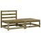 Canapé de jardin sans accoudoirs avec coussins et repose-piedsCe canapé de jardin en bois avec coussins et repose-pieds sera un excellent supplément à votre jardin, terrasse ou patio pour discuter en famille et entre amis ou tout simplement profiter du beau temps. Bois imprégné : le bois de pin massif est un matériau naturel magnifique. Le bois de pin a un grain droit et les noeuds lui confèrent un aspect rustique caractéristique. L'imprégnation est un processus de conservation réalisé à l'aide d'autoclaves. Le traitement sous pression augmente la résistance à la pourriture et aux intempéries. Expérience d'assise confortable : le dossier et les coussins rembourrés rendent le siège de jardin plus confortable pour s'asseoir. Utilisation polyvalente : ce repose-pieds d'extérieur peut non seulement être utilisé pour vous asseoir ou vous détendre, mais il peut également être utilisé comme table basse pour contenir vos boissons, votre nourriture et d'autres décorations. Conception à lattes : la conception à lattes du canapé d'extérieur empêche efficacement l'eau de s'accumuler, ce qui garantit que l'assise reste sèche et exempte de tout risque de pourriture. Conception modulaire : ce canapé de terrasse présente une conception modulaire, ce qui le rend complètement flexible et facile à déplacer pour s'adapter à n'importe quel environnement. Vous pouvez le combiner avec d'autres segments modulaires disponibles dans le menu déroulant pour créer vos propres configurations d'ensemble de salon de jardin personnelles ! Bon à savoir : Pour que vos meubles d'extérieur restent beaux, nous vous recommandons de les protéger avec une housse imperméable. Maximum 110 kg par siège. Soyez conscient du risque de feux ouverts et d'autres sources de forte chaleur à proximité du produit. ,