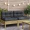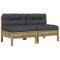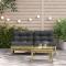 Canapé de jardin sans accoudoirs et coussins 2 pcs pin imprégnéCes canapés de jardin en bois avec coussins seront un excellent complément à votre jardin, terrasse ou patio pour discuter avec la famille et les amis ou simplement profiter du temps. Bois imprégné : le bois de pin massif est un matériau naturel magnifique. Le bois de pin a un grain droit et les noeuds lui confèrent un aspect rustique caractéristique. L'imprégnation est un processus de conservation réalisé à l'aide d'autoclaves. Le traitement sous pression augmente la résistance à la pourriture et aux intempéries. Expérience d'assise confortable : le dossier et les coussins rembourrés rendent le canapé de jardin plus confortable pour s'asseoir. Conception à lattes : la conception à lattes du canapé d'extérieur empêche efficacement l'eau de s'accumuler, ce qui garantit que l'assise reste sèche et exempte de tout risque de pourriture. Conception modulaire : ce canapé simple présente une conception modulaire, ce qui le rend complètement flexible et facile à déplacer pour s'adapter à n'importe quel cadre. Vous pouvez le combiner avec d'autres segments modulaires disponibles dans le menu déroulant pour créer vos propres configurations de salon de jardin ! Bon à savoir : Pour que vos meubles d'extérieur restent beaux, nous vous recommandons de les protéger avec une housse imperméable. Maximum 110 kg par siège. Soyez conscient du risque de feux ouverts et d'autres sources de forte chaleur à proximité du produit. ,