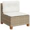Canapé de jardin sans accoudoirs coussins beige résine tresséeDétendez-vous et profitez de l'extérieur dans ce confortable canapé de jardin ! Matériau durable : la résine tressée, également connue sous le nom de poly rotin, est un matériau synthétique solide et nécessitant peu d'entretien qui ressemble au rotin naturel. Il est léger, facile à nettoyer et couramment utilisé pour les meubles d'extérieur en raison de sa durabilité et de ses propriétés de résistance aux intempéries.Expérience d'assise confortable : ce mobilier d'extérieur, doté de coussins épais, offre une expérience d'assise confortable.Housse amovible et lavable : le coussin de siège est doté d'une housse amovible pour un lavage et un entretien faciles.Conception modulaire : ce meuble d'extérieur a une conception modulaire, ce qui le rend complètement flexible et facile à déplacer, afin que vous puissiez créer un agencement de meubles d'extérieur personnalisé. Bon à savoir :Pour que vos meubles d'extérieur restent beaux, nous vous recommandons de les protéger avec une housse imperméable. Maximum 110 kg par siège. Soyez conscient du risque de feux ouverts et d'autres sources de forte chaleur à proximité du produit.