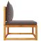 Canapé de jardin sans accoudoirs coussins bois massif d'acaciaCe canapé de jardin en bois avec coussins sera un excellent complément à votre jardin, terrasse ou patio pour discuter avec la famille et les amis ou simplement profiter du temps. Cadre robuste et stable : le bois d'acacia massif est connu pour sa solidité et sa durabilité. Ses couleurs variées et ses grains uniques lui confèrent un aspect attrayant. Sa stabilité et sa résistance aux intempéries en font un matériau idéal pour la fabrication de meubles d'intérieur et d'extérieur.Expérience d'assise confortable : ce mobilier d'extérieur, doté de coussins épais, offre une expérience d'assise confortable.Housse amovible et lavable : Ce coussin de siège est doté d'une housse amovible pour un lavage et un entretien faciles.Conception modulaire : ce meuble d'extérieur a une conception modulaire, ce qui le rend complètement flexible et facile à déplacer, afin que vous puissiez créer un agencement de meubles d'extérieur personnalisé. Bon à savoir :Pour que vos meubles d'extérieur restent beaux, nous vous recommandons de les protéger avec une housse imperméable. Maximum 110 kg par siège. Soyez conscient du risque de feux ouverts et d'autres sources de forte chaleur à proximité du produit.