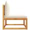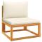 Canapé de jardin sans accoudoirs coussins bois massif d'acaciaCe canapé de jardin en bois avec coussins sera un excellent complément à votre jardin, terrasse ou patio pour discuter avec la famille et les amis ou simplement profiter du temps. Cadre robuste et stable : le bois d'acacia massif est connu pour sa solidité et sa durabilité. Ses couleurs variées et ses grains uniques lui confèrent un aspect attrayant. Sa stabilité et sa résistance aux intempéries en font un matériau idéal pour la fabrication de meubles d'intérieur et d'extérieur.Expérience d'assise confortable : ce mobilier d'extérieur, doté de coussins épais, offre une expérience d'assise confortable.Housse amovible et lavable : Ce coussin de siège est doté d'une housse amovible pour un lavage et un entretien faciles.Conception modulaire : ce meuble d'extérieur a une conception modulaire, ce qui le rend complètement flexible et facile à déplacer, afin que vous puissiez créer un agencement de meubles d'extérieur personnalisé. Bon à savoir :Pour que vos meubles d'extérieur restent beaux, nous vous recommandons de les protéger avec une housse imperméable. Maximum 110 kg par siège. Soyez conscient du risque de feux ouverts et d'autres sources de forte chaleur à proximité du produit.