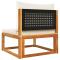 Canapé de jardin sans accoudoirs coussins bois massif d'acaciaCe canapé de jardin en bois avec coussins sera un excellent complément à votre jardin, terrasse ou patio pour discuter avec la famille et les amis ou simplement profiter du temps. Cadre robuste et stable : le bois d'acacia massif est connu pour sa solidité et sa durabilité. Ses couleurs variées et ses grains uniques lui confèrent un aspect attrayant. Sa stabilité et sa résistance aux intempéries en font un matériau idéal pour la fabrication de meubles d'intérieur et d'extérieur.Expérience d'assise confortable : ce mobilier d'extérieur, doté de coussins épais, offre une expérience d'assise confortable.Housse amovible et lavable : Ce coussin de siège est doté d'une housse amovible pour un lavage et un entretien faciles.Conception modulaire : ce meuble d'extérieur a une conception modulaire, ce qui le rend complètement flexible et facile à déplacer, afin que vous puissiez créer un agencement de meubles d'extérieur personnalisé. Bon à savoir :Pour que vos meubles d'extérieur restent beaux, nous vous recommandons de les protéger avec une housse imperméable. Maximum 110 kg par siège. Soyez conscient du risque de feux ouverts et d'autres sources de forte chaleur à proximité du produit.
