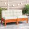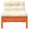 Canapé jardin sans accoudoirs coussins cire marron massif pinCe canapé de jardin en bois avec coussins sera un excellent complément à votre jardin, terrasse ou patio pour discuter avec la famille et les amis ou simplement profiter du temps. Bois de pin massif : le bois de pin massif est un matériau naturel magnifique. Le bois de pin a un grain droit et les noeuds donnent au matériau son aspect caractéristique et rustique. Fabriqué en bois de pin massif, ce canapé sans accoudoirs est durable et stable. Expérience d'assise confortable : le dossier et les coussins rembourrés rendent le canapé de jardin plus confortable pour s'asseoir. Conception à lattes : la conception à lattes du canapé d'extérieur empêche efficacement l'eau de s'accumuler, ce qui garantit que l'assise reste sèche et exempte de tout risque de pourriture. Conception modulaire : ce canapé simple présente une conception modulaire, ce qui le rend complètement flexible et facile à déplacer pour s'adapter à n'importe quel environnement. Vous pouvez le combiner avec d'autres segments modulaires disponibles dans le menu déroulant pour créer vos propres configurations d'ensemble de salon de jardin personnelles ! Bon à savoir : Pour que vos meubles d'extérieur restent beaux, nous vous recommandons de les protéger avec une housse imperméable. Maximum 110 kg par siège. Soyez conscient du risque de feux ouverts et d'autres sources de forte chaleur à proximité du produit. ,
