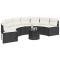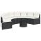 Canapé de jardin table coussins demi-rond noir résine tresséeCe canapé de jardin de forme demi-ronde est le complément parfait à votre jardin, terrasse ou patio, offrant un espace confortable et accueillant pour discuter avec la famille et les amis ou simplement pour vous détendre et profiter du plein air. Matériau durable : la résine tressée, également connue sous le nom de poly rotin, est un matériau synthétique solide et nécessitant peu d'entretien qui ressemble au rotin naturel. Elle est légère, facile à nettoyer et couramment utilisée pour les meubles d'extérieur en raison de sa durabilité et de ses propriétés de résistance aux intempéries. Expérience d'assise confortable : ce mobilier d'extérieur, doté de coussins épais, offre une expérience d'assise confortable. Housse amovible et lavable : ces coussins de siège sont dotés de housses amovibles pour un lavage et un entretien faciles. Dessus en verre : le dessus de la table d'extérieur est fabriqué en verre trempé solide et durable, ce qui le rend facile à nettoyer avec un chiffon humide et ajoute une touche d'élégance à votre espace extérieur. Cadre robuste et stable : le cadre en acier enduit de poudre assure la solidité et la stabilité du meuble de jardin pour une utilisation quotidienne à l'extérieur. Bon à savoir : Pour que vos meubles d'extérieur restent beaux, nous vous recommandons de les protéger avec une housse imperméable. Maximum 110 kg par siège. Soyez conscient du risque de feu ouvert et d'autres sources de forte chaleur à proximité de l'appareil.