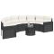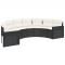 Canapé de jardin table coussins demi-rond noir résine tresséeCe canapé de jardin de forme demi-ronde est le complément parfait à votre jardin, terrasse ou patio, offrant un espace confortable et accueillant pour discuter avec la famille et les amis ou simplement pour vous détendre et profiter du plein air. Matériau durable : la résine tressée, également connue sous le nom de poly rotin, est un matériau synthétique solide et nécessitant peu d'entretien qui ressemble au rotin naturel. Elle est légère, facile à nettoyer et couramment utilisée pour les meubles d'extérieur en raison de sa durabilité et de ses propriétés de résistance aux intempéries. Expérience d'assise confortable : ce mobilier d'extérieur, doté de coussins épais, offre une expérience d'assise confortable. Housse amovible et lavable : ces coussins de siège sont dotés de housses amovibles pour un lavage et un entretien faciles. Dessus en verre : le dessus de la table d'extérieur est fabriqué en verre trempé solide et durable, ce qui le rend facile à nettoyer avec un chiffon humide et ajoute une touche d'élégance à votre espace extérieur. Cadre robuste et stable : le cadre en acier enduit de poudre assure la solidité et la stabilité du meuble de jardin pour une utilisation quotidienne à l'extérieur. Bon à savoir : Pour que vos meubles d'extérieur restent beaux, nous vous recommandons de les protéger avec une housse imperméable. Maximum 110 kg par siège. Soyez conscient du risque de feu ouvert et d'autres sources de forte chaleur à proximité de l'appareil.