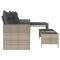 Canapé de jardin et table et coussins en forme de L gris clairCe canapé de jardin en forme de L est le complément parfait de votre jardin, terrasse ou patio, offrant un espace confortable et accueillant pour discuter avec la famille et les amis ou simplement se détendre et profiter de l'extérieur. Matériau durable : la résine tressée, également connue sous le nom de poly rotin, est un matériau synthétique solide et nécessitant peu d'entretien qui ressemble au rotin naturel. Il est léger, facile à nettoyer et couramment utilisé pour les meubles d'extérieur en raison de sa durabilité et de ses propriétés de résistance aux intempéries.Expérience d'assise confortable : ce mobilier d'extérieur, doté de coussins épais, offre une expérience d'assise confortable.Housse amovible et lavable : ces coussins de siège sont dotés de housses amovibles pour un lavage et un entretien faciles. Cadre robuste et stable : le cadre en acier enduit de poudre assure la solidité et la stabilité du meuble de jardin pour une utilisation quotidienne à l'extérieur.Dessus en verre : le dessus de la table d'extérieur est fabriqué en verre trempé solide et durable, ce qui le rend facile à nettoyer avec un chiffon humide et ajoute une touche d'élégance à votre espace extérieur. Bon à savoir :Pour que vos meubles d'extérieur restent beaux, nous vous recommandons de les protéger avec une housse imperméable. Maximum 110 kg par siège. Soyez conscient du risque de feux ouverts et d'autres sources de forte chaleur à proximité du produit.