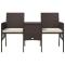 Canapé de jardin table à thé et tabourets Résine tressée MarronCet ensemble de mobilier de jardin de sept pièces attirera tous les regards dans votre jardin, sur votre balcon ou terrasse. C'est une combinaison parfaite de style et de fonctionnalité. Grâce à la résine tressée résistante à l'eau, l'ensemble de banc est facile à nettoyer et durable. La structure en acier enduit de poudre rend également cet ensemble de meubles solide et stable. Les deux sièges sont reliés par une table à thé, sur laquelle vous pouvez facilement garder vos boissons, collations ou livres préférés à portée de main. Ces deux repose-pieds peuvent être facilement déplacés sous le banc pour économiser de l'espace lorsqu'ils ne sont pas utilisés. Cet ensemble est également livré avec des coussins très confortables et épaissement rembourrés pour un confort d'assise optimal. Les housses en polyester nécessitant peu d'entretien peuvent être enlevées et lavées. La livraison comprend 1 banc à 1 place avec table à thé, 2 repose-pieds et 4 coussins de siège. Remarque : nous vous recommandons de couvrir l'ensemble pendant la pluie, la neige et le gel pour une meilleure longévité.