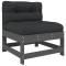 Canapés centraux avec coussins 2 pcs gris bois de pin massifCes canapés centraux en bois, qui se démarquent par leur design à lattes et leurs coussins moelleux, seront un excellent supplément à votre jardin, patio ou terrasse pour profiter d'un moment agréable avec votre famille ou vos amis. Bois de pin massif : le bois de pin massif est un matériau naturel magnifique. Le bois de pin a un grain droit et les noeuds donnent au matériau son aspect caractéristique et rustique. Cadre robuste et stable : le cadre en bois rend le canapé de jardin robuste et stable pour une utilisation quotidienne à l'extérieur. Expérience d'assise confortable : le dossier ajoute un confort d'assise supplémentaire au canapé d'extérieur. De plus, le coussin bien rembourré offre du confort pendant votre temps d'assise. Design modulaire : le canapé sectionnel est flexible et facile à déplacer. Vous pouvez le combiner avec d'autres segments modulaires sur notre site Web pour créer votre propre ensemble de salon de jardin ! Bon à savoir : Pour que vos meubles d'extérieur restent beaux, nous vous recommandons de les protéger avec une housse imperméable. Maximum 110 kg par siège. ,