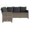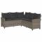 Canapés en forme de L avec coussins gris résine tresséeCe canapé en forme de L est un excellent choix pour les repas en plein air ou pour se détendre dans le jardin, dans l'arrière-cour ou sur la terrasse. Matériau durable : la résine tressée, également connue sous le nom de poly rotin, est un matériau synthétique solide et nécessitant peu d'entretien qui ressemble au rotin naturel. Elle est légère, facile à nettoyer et couramment utilisée pour les meubles d'extérieur en raison de sa durabilité et de ses propriétés de résistance aux intempéries.Cadre robuste et stable : le cadre en acier enduit de poudre assure la solidité et la stabilité du meuble de jardin pour une utilisation quotidienne à l'extérieur.Expérience d'assise confortable : ce mobilier d'extérieur, doté de coussins épais, offre une expérience d'assise confortable.Housse amovible et lavable : ces coussins de siège sont dotés de housses amovibles pour un lavage et un entretien faciles. Bon à savoir :Pour que vos meubles d'extérieur restent beaux, nous vous recommandons de les protéger avec une housse imperméable.