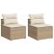Canapés de jardin sans accoudoirs avec coussins 2 pcs beigeDétendez-vous et profitez de l'extérieur dans ces confortables canapés de jardin ! Rotin PE : la résine tressée, également connue sous le nom de poly rotin, est un matériau synthétique solide et nécessitant peu d'entretien qui ressemble au rotin naturel. Il est léger, facile à nettoyer et couramment utilisé pour les meubles d'extérieur en raison de sa durabilité et de ses propriétés de résistance aux intempéries.Expérience d'assise confortable : ce mobilier d'extérieur, doté de coussins épais, offre une expérience d'assise confortable.Housse amovible et lavable : ces coussins de siège sont dotés de housses amovibles pour un lavage et un entretien faciles.Cadre robuste et stable : le cadre en acier enduit de poudre assure la solidité et la stabilité du meuble de jardin pour une utilisation quotidienne à l'extérieur.Conception modulaire : ce meuble d'extérieur a une conception modulaire, ce qui le rend complètement flexible et facile à déplacer, afin que vous puissiez créer un agencement de meubles d'extérieur personnalisé. Bon à savoir :Pour que vos meubles d'extérieur restent beaux, nous vous recommandons de les protéger avec une housse imperméable. Maximum 110 kg par siège. Soyez conscient du risque de feux ouverts et d'autres sources de forte chaleur à proximité du produit.