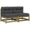 Canapés jardin sans accoudoirs coussins 2 pcs bois pin imprégnéCes canapés de jardin en bois avec coussins seront un excellent complément à votre jardin, terrasse ou patio pour discuter avec la famille et les amis ou simplement profiter du temps. Bois imprégné : le bois de pin massif est un matériau naturel magnifique. Le bois de pin a un grain droit et les noeuds lui confèrent un aspect rustique caractéristique. L'imprégnation est un processus de conservation réalisé à l'aide d'autoclaves. Le traitement sous pression augmente la résistance à la pourriture et aux intempéries. Expérience d'assise confortable : le dossier et les coussins rembourrés rendent le canapé de jardin plus confortable pour s'asseoir. Conception à lattes : la conception à lattes du canapé d'extérieur empêche efficacement l'eau de s'accumuler, ce qui garantit que l'assise reste sèche et exempte de tout risque de pourriture. Conception modulaire : ce canapé simple présente une conception modulaire, ce qui le rend complètement flexible et facile à déplacer pour s'adapter à n'importe quel cadre. Vous pouvez le combiner avec d'autres segments modulaires disponibles dans le menu déroulant pour créer vos propres configurations de salon de jardin ! Bon à savoir : Pour que vos meubles d'extérieur restent beaux, nous vous recommandons de les protéger avec une housse imperméable. Maximum 110 kg par siège. Soyez conscient du risque de feux ouverts et d'autres sources de forte chaleur à proximité du produit. ,