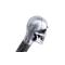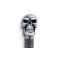 Cette canne épée se compose d’une lame en acier inoxydable dissimulée dans un fût en métal noir, avec un système d’ouverture à visser. Son pommeau en résine patinée en forme de tête de mort donne une finition marquée, tandis que l’embout en caoutchouc améliore la stabilité à l’appui.