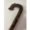 Je vends notamment cette canne/bâton de marche, « dénichées » en Chine, Chengdu. Sa longueur est de 90 cm. Elle est en bois sculté, le pommeau est sculpté et représente une tête de dragon, tenant dans sa bouche une bille, mobile, figuant le monde.