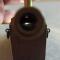 Canon miniature en bronze ou laiton, monté sur affût en bois comme sur les navires ou pour la défense côtière (sans les roulettes, apparemment pas prévues sur ce modèle).