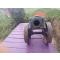 Canon réjouissanse à restaurer, peu être Manufrance mais sans certitude, Canon rouillé avec plusieurs couches de peinture, le Canon pivote très bien, sans aucun jeu, mais côté gauche le tourillon est cassé, bien visible sur la dernière photo....