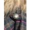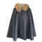 Cape chic pour femme en tweed gris foncé à carreaux roses et bleus, avec col en véritable fourrure. Une pièce élégante et chaleureuse pour l'après-chasse.